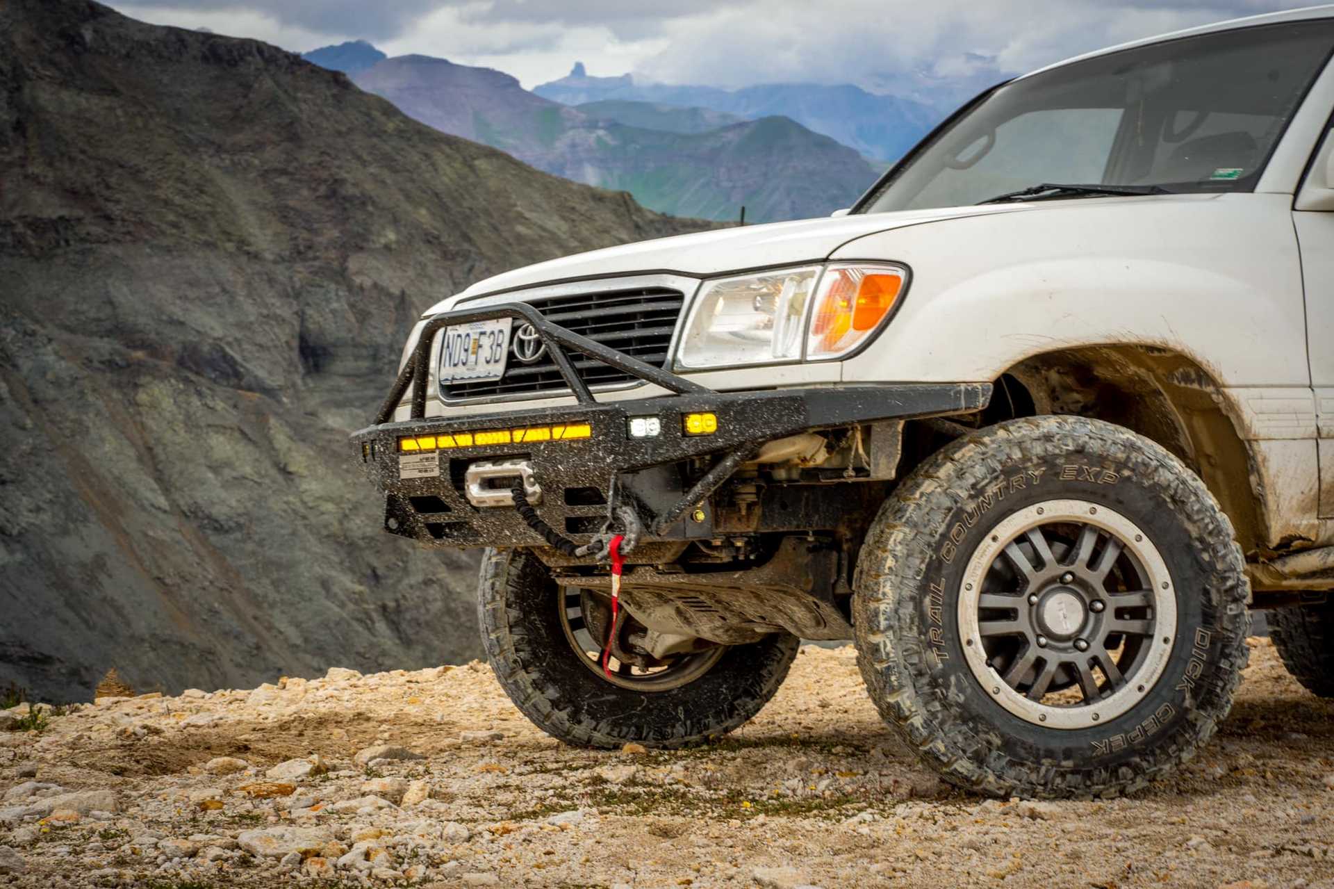 Our modular rear bumper is high clearance and can be customized with an array of available accessories to fit your needs and adventures. Our Front bumper is also high clearance and as stylish and tough as the rear bumper. We also fabricate some of the best rock sliders on the market for the Land Cruiser 100 series (Toyota Land Cruiser and Lexus LX470).
